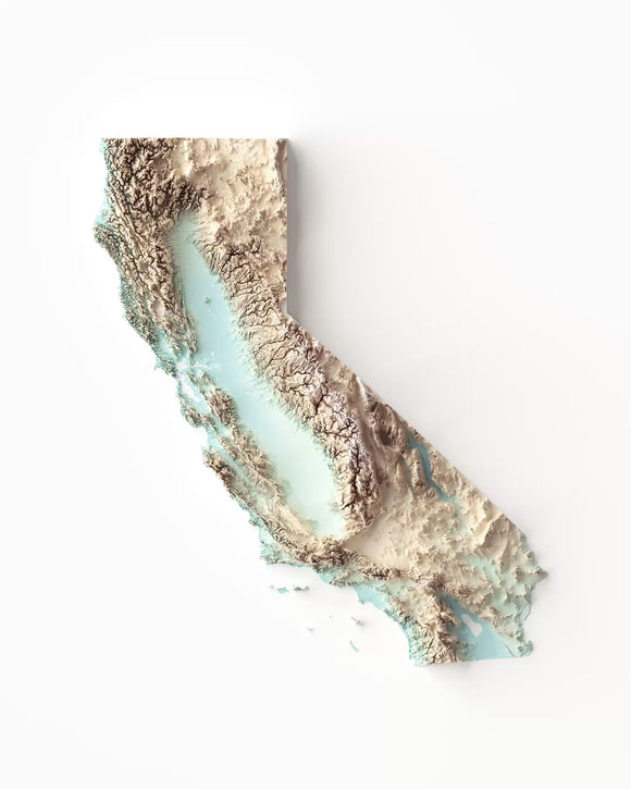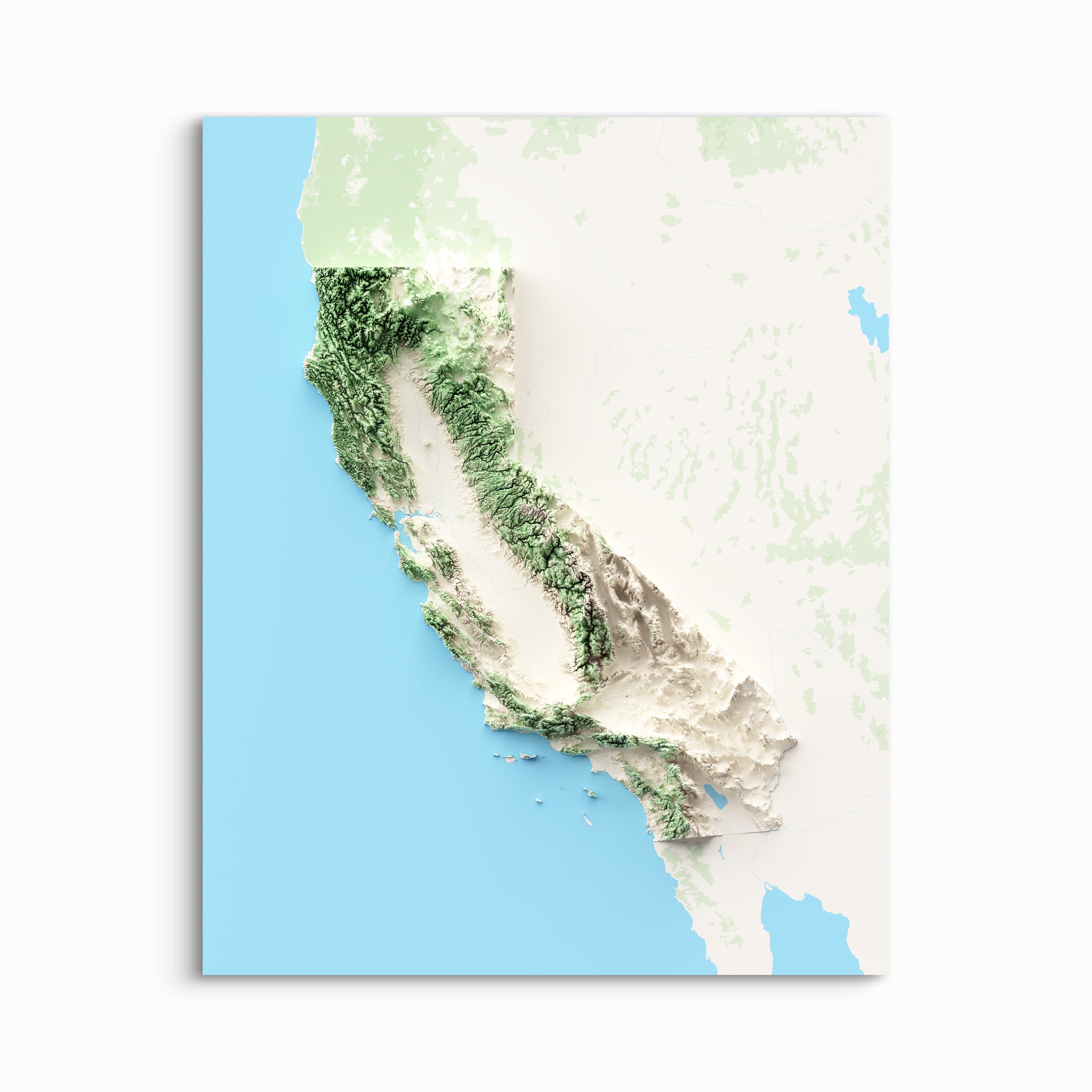 This map elegantly highlights the natural beauty of California's landscape, making it a perfect choice for geography aficionados, outdoor adventurers, and those seeking a thoughtful and unique gift.