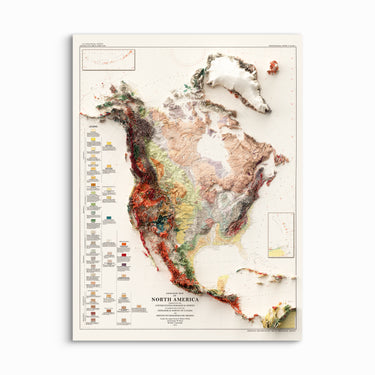 This museum-quality giclée print features a shaded-relief geologic map of North America, created using modern elevation data to showcase the continent’s diverse landforms and geology with striking depth and clarity. Printed on archival fine art paper with premium inks, it combines scientific accuracy with vintage cartographic charm, making it a perfect statement piece for geologists, educators, map enthusiasts, or anyone who appreciates the beauty of Earth’s landscapes.
