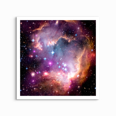This high-resolution optical and infrared image from NASA/ESA’s Hubble and James Webb Space Telescopes shows NGC 602, a young star cluster in the Small Magellanic Cloud. It captures bright, newly formed stars carving a cavity amid glowing gas and dust, highlighting the ongoing and multi‑generational process of star formation in a low-metallicity environment. Whether you're decorating a home office, gifting a fellow stargazer, or just dreaming bigger, this celestial print is sure to inspire.