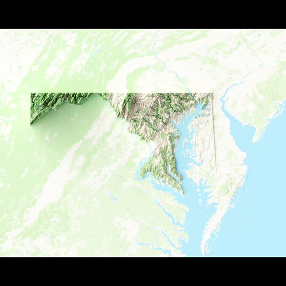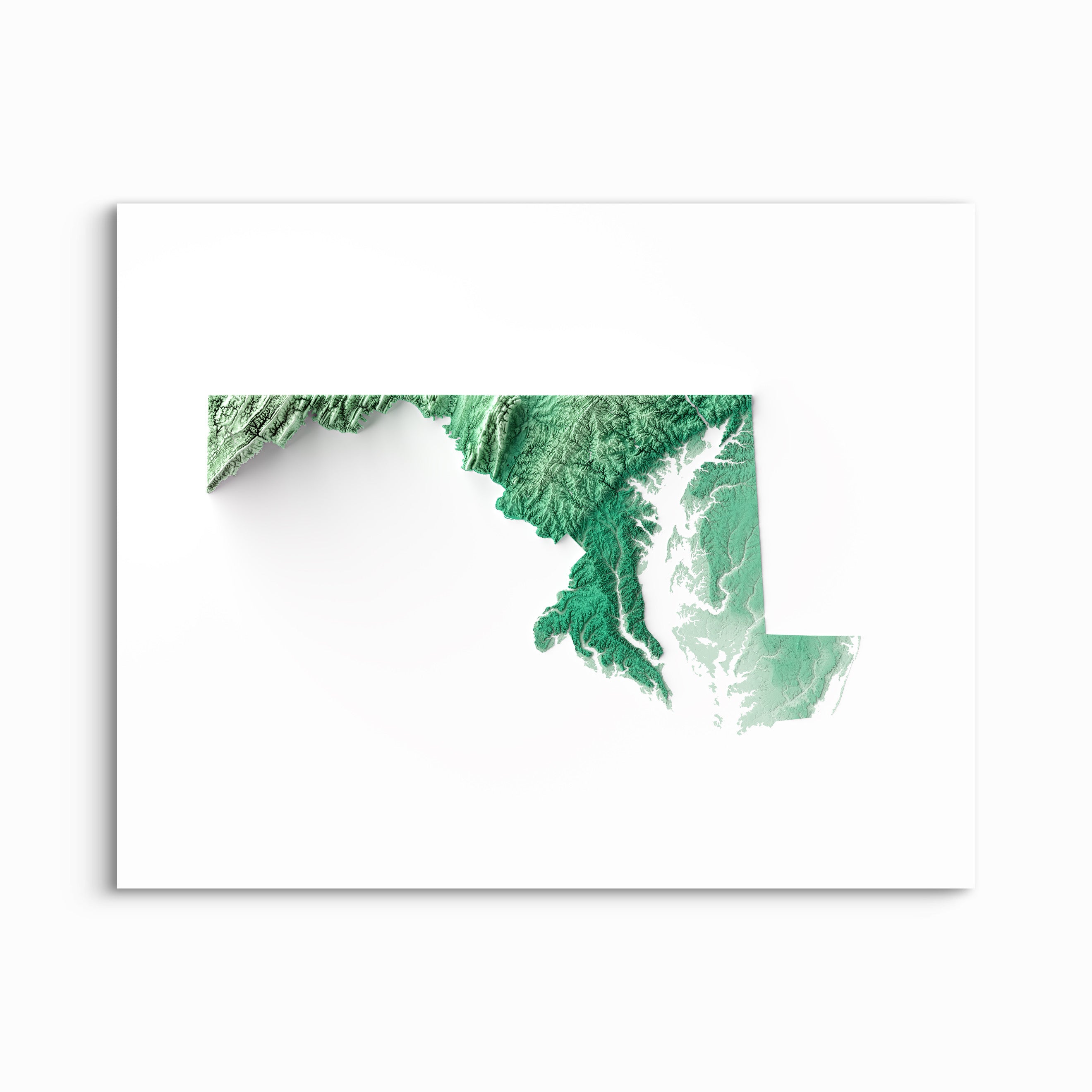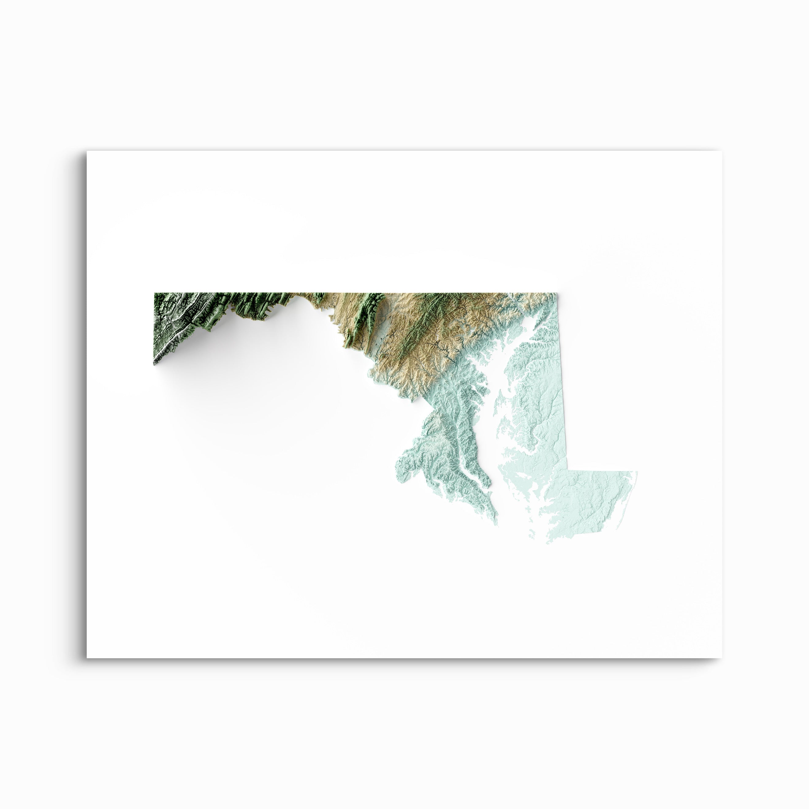 This map elegantly highlights the natural beauty of Maryland's landscape, making it a perfect choice for geography aficionados, outdoor adventurers, and those seeking a thoughtful and unique gift.