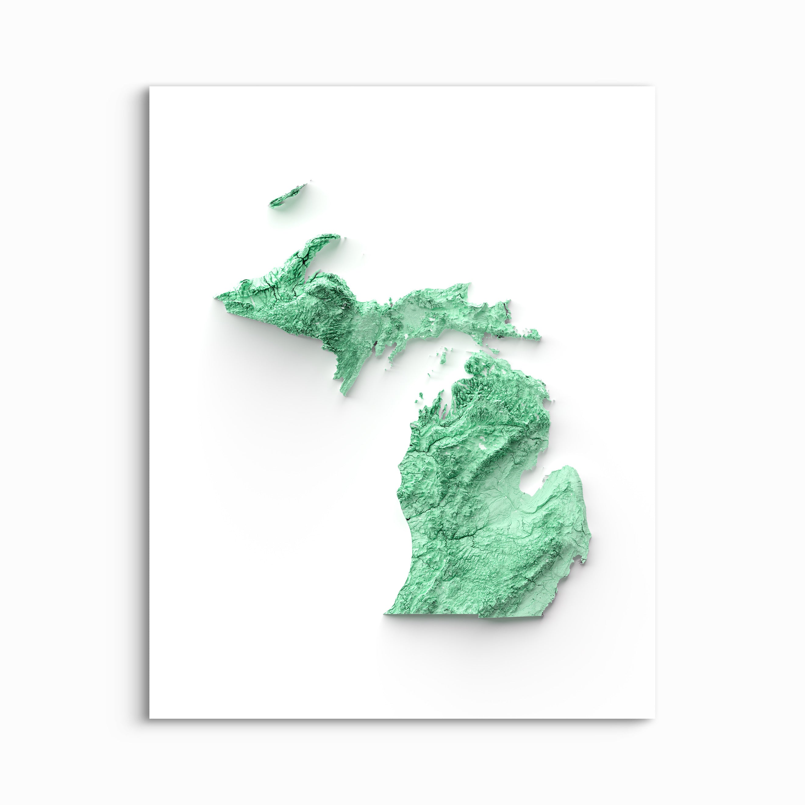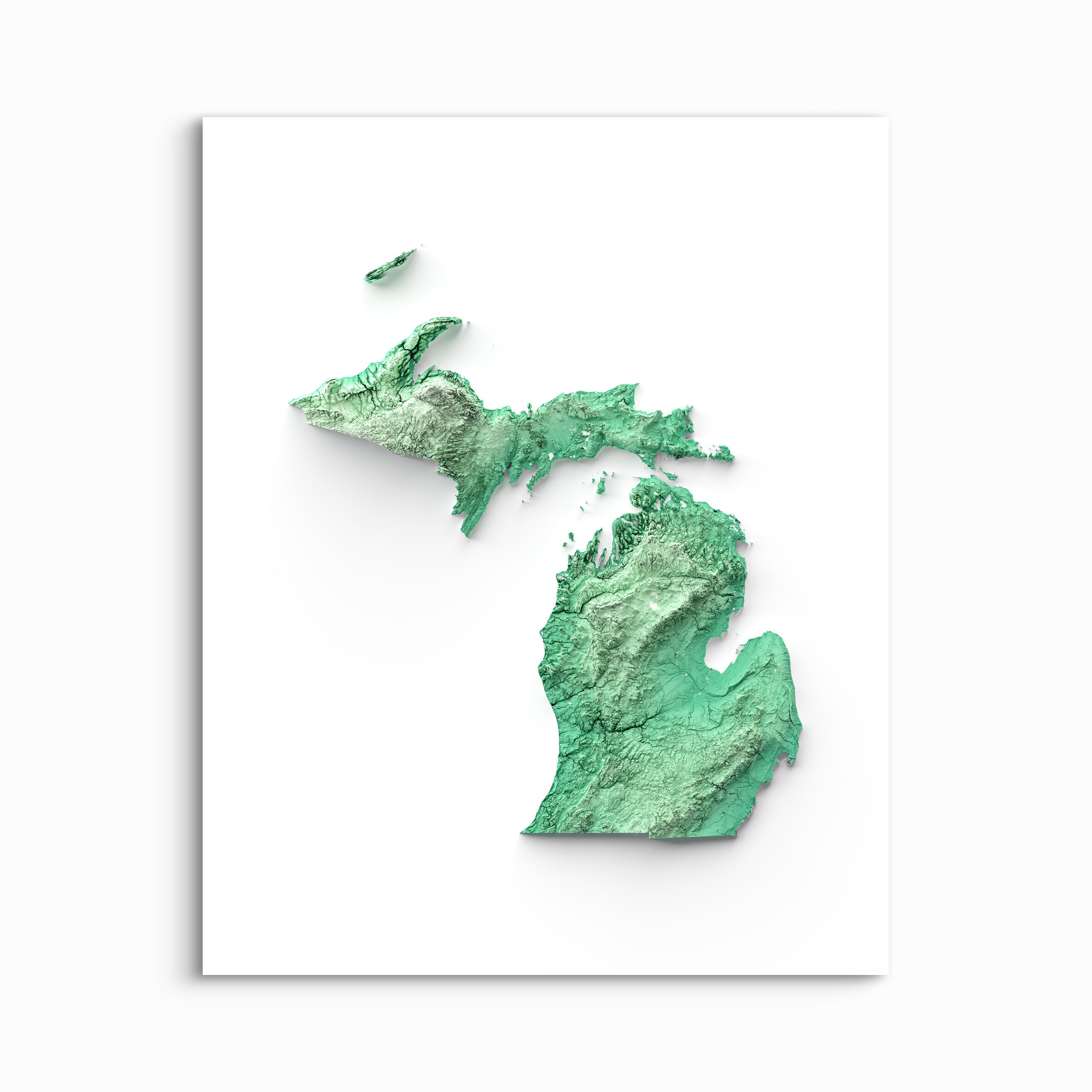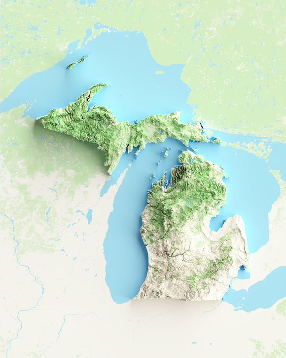 This map elegantly highlights the natural beauty of Michigan's landscape, making it a perfect choice for geography aficionados, outdoor adventurers, and those seeking a thoughtful and unique gift.