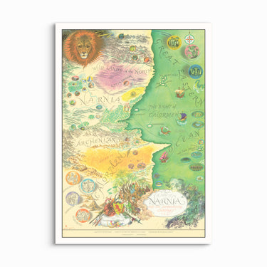 This artistic fantasy map captures the entire world of Narnia, created by original series illustrator Pauline Baynes. Based on C.S. Lewis's The Chronicles of Narnia, it weaves together elements from all seven books in a single, comprehensive design.