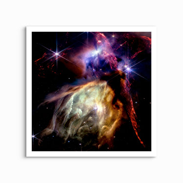 This high-resolution near-infrared image from NASA’s James Webb Space Telescope shows the Rho Ophiuchi cloud complex, the closest star-forming region to Earth. It reveals dozens of newborn stars emerging from dense cosmic dust, with dramatic jets and glowing gas marking the powerful, chaotic process of stellar birth. Whether you're decorating a home office, gifting a fellow stargazer, or just dreaming bigger, this celestial print is sure to inspire.
