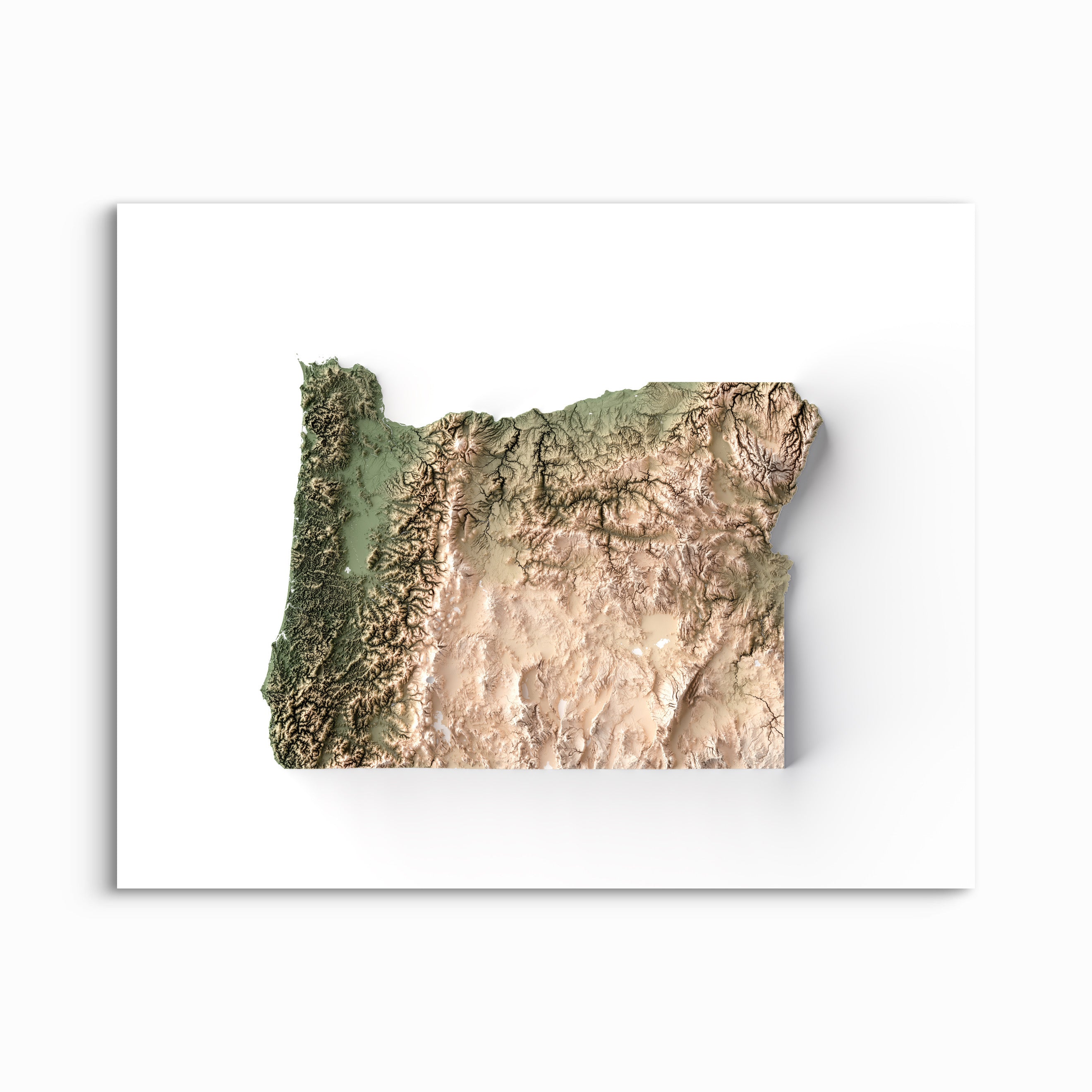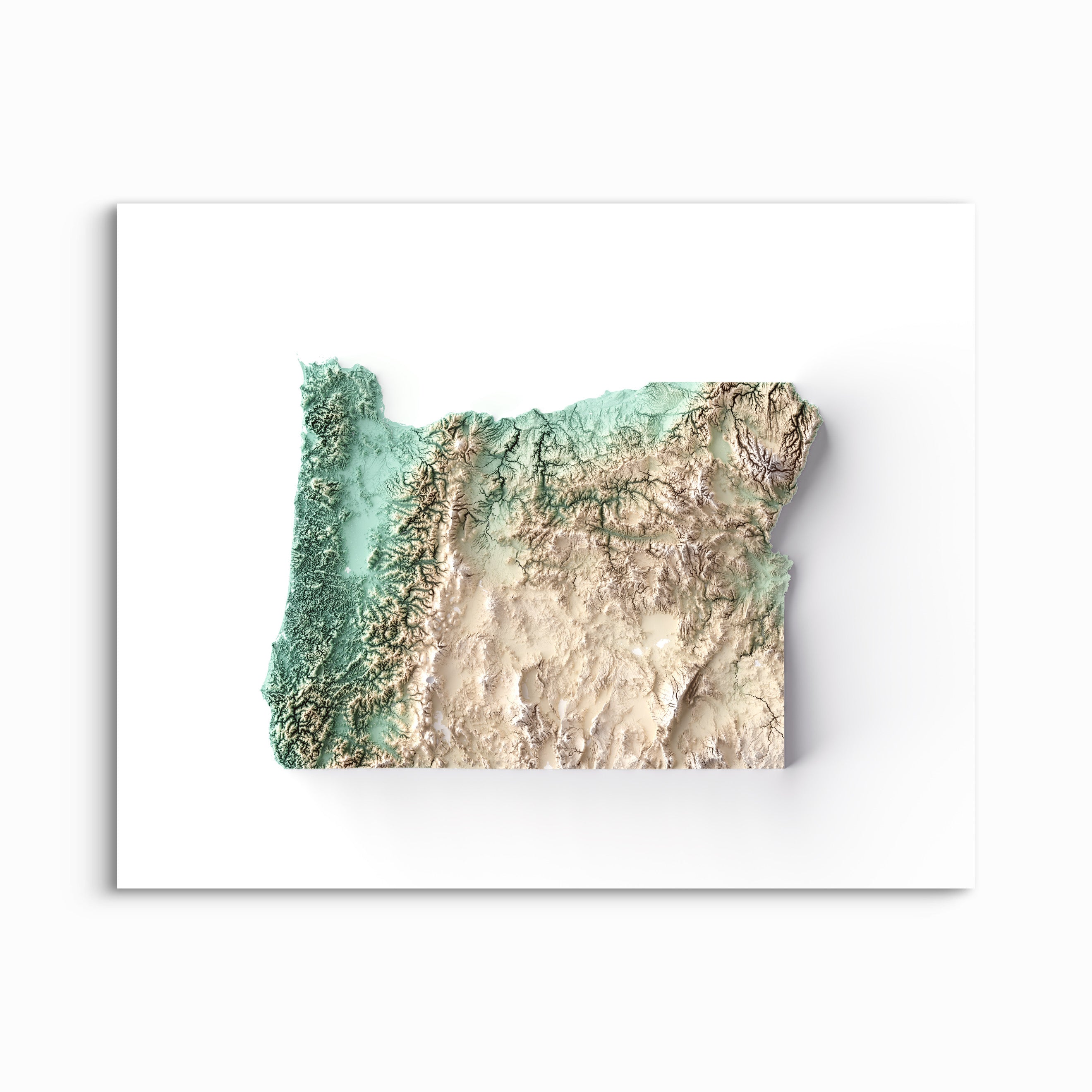 This map elegantly highlights the natural beauty of Oregon's landscape, making it a perfect choice for geography aficionados, outdoor adventurers, and those seeking a thoughtful and unique gift.