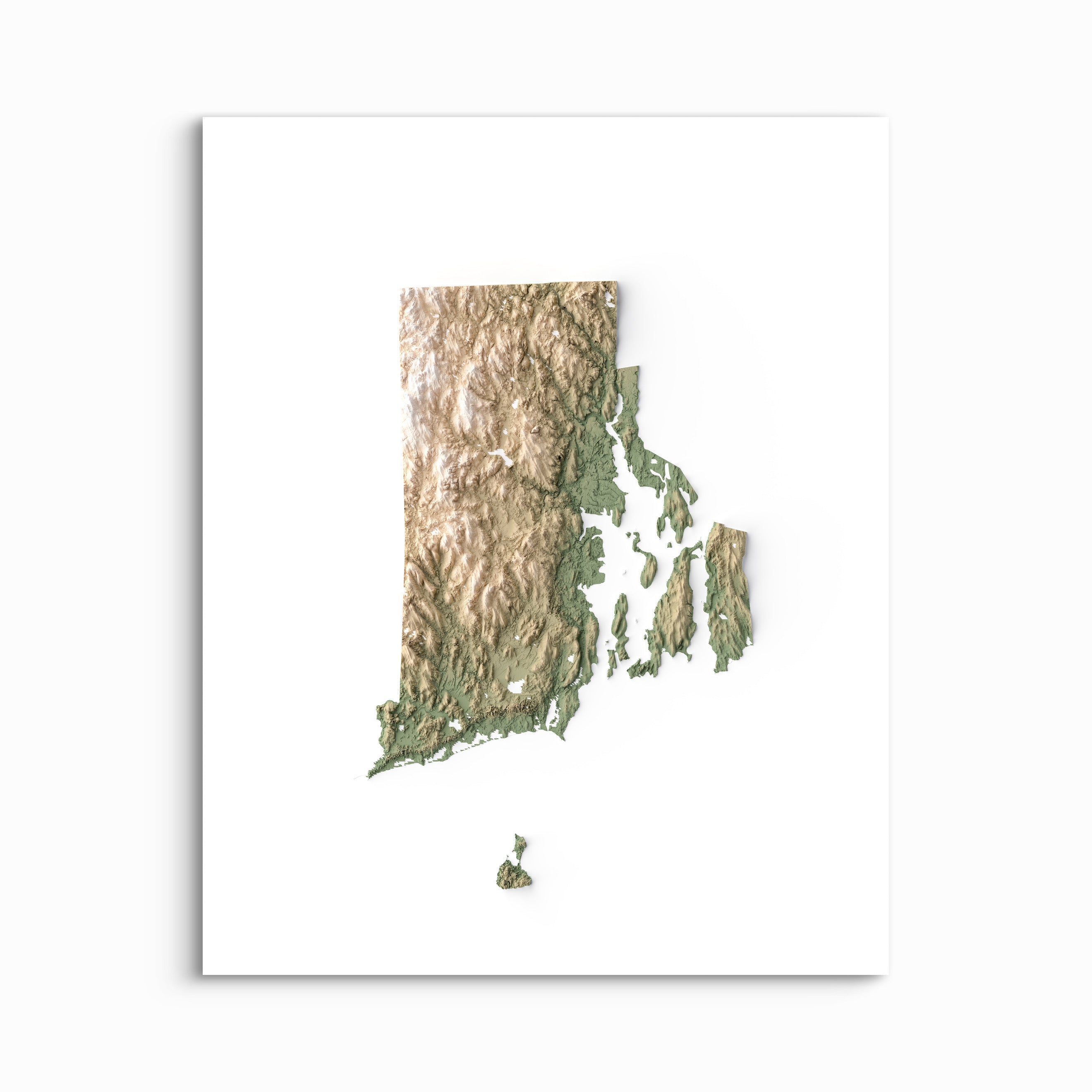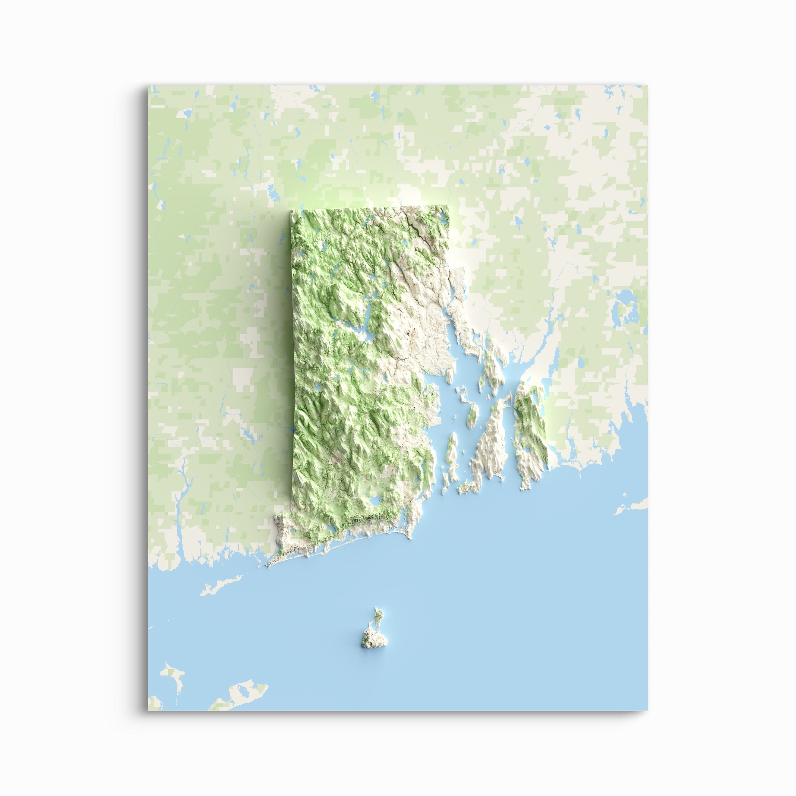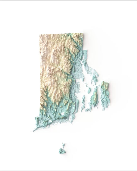 This map elegantly highlights the natural beauty of Rhode Island's landscape, making it a perfect choice for geography aficionados, outdoor adventurers, and those seeking a thoughtful and unique gift.