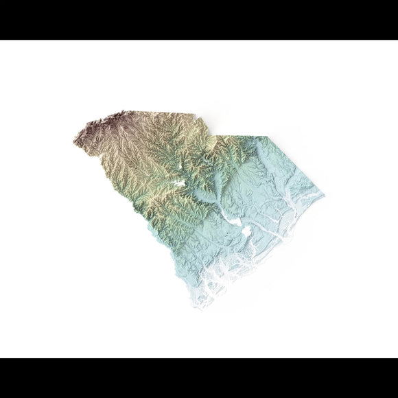 South Carolina Shaded Relief Maps | Custom Topographic Print